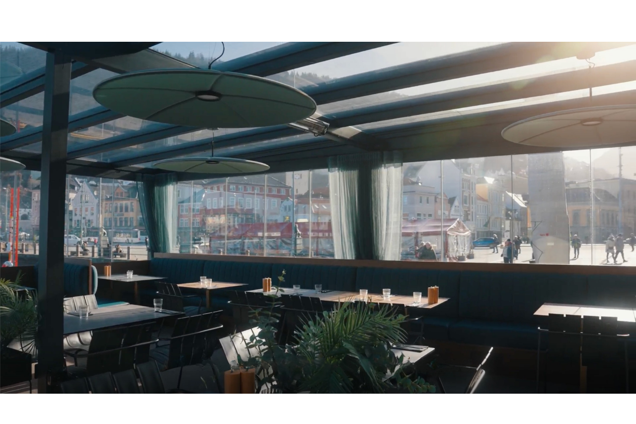 Fish Me Fisketorget AS is a waterfront restaurant in Bergen, exposed to strong sunlight throughout the day due to its open harbor location. While the large glass façades offer stunning views, they also lead to significant glare and heat build-up, impacting guest comfort and the indoor dining experience. Fish Me needed a solution that would reduce heat and glare without compromising natural light or the connection to the waterfront.